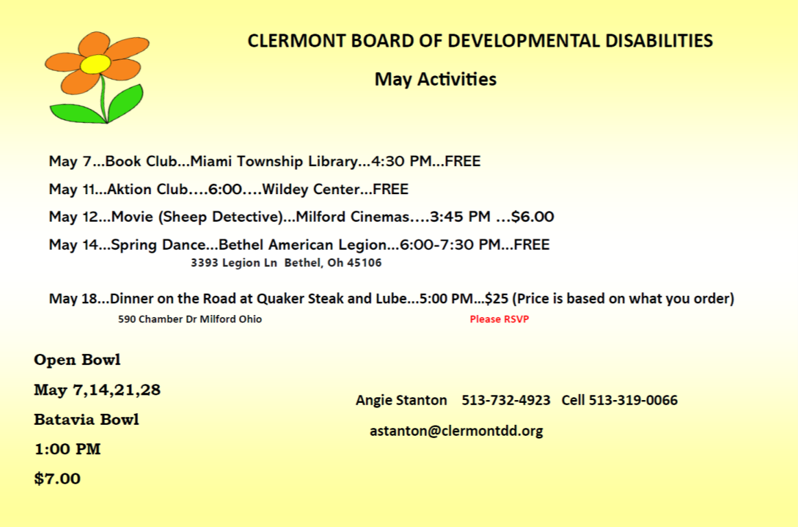 For additional information, contact ldavis@clermontdd.org or call 513-732-4921. Jan