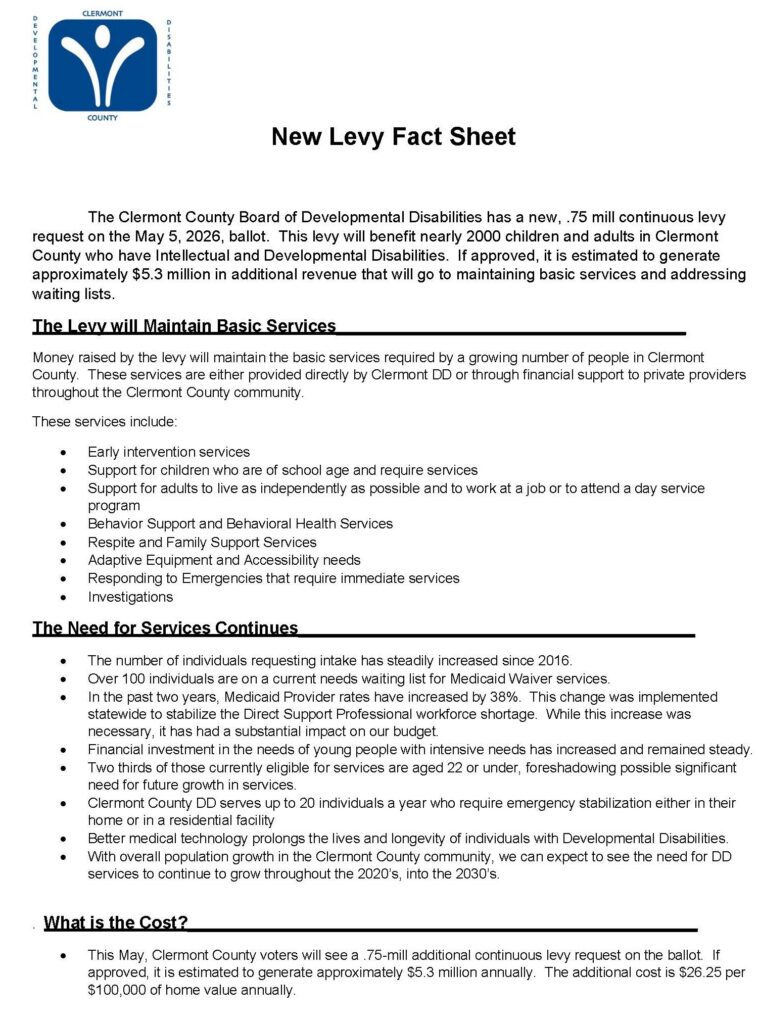 Please see information about our levy that has been placed on the May 5, 2026 ballot. Contact us if you have questions or need additional information.