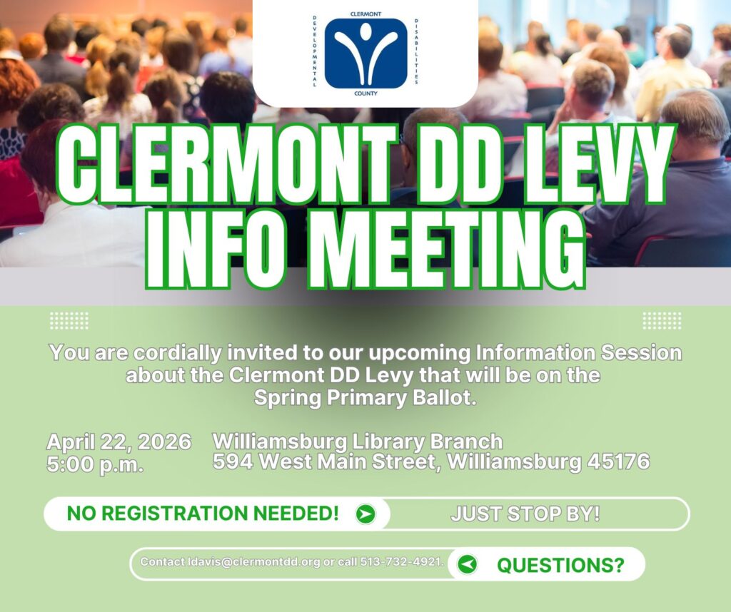 Here’s a chance for you to meet with Superintendent Dan Ottke in person and get answers to questions about the upcoming Clermont DD Levy on the May 5 ballot.